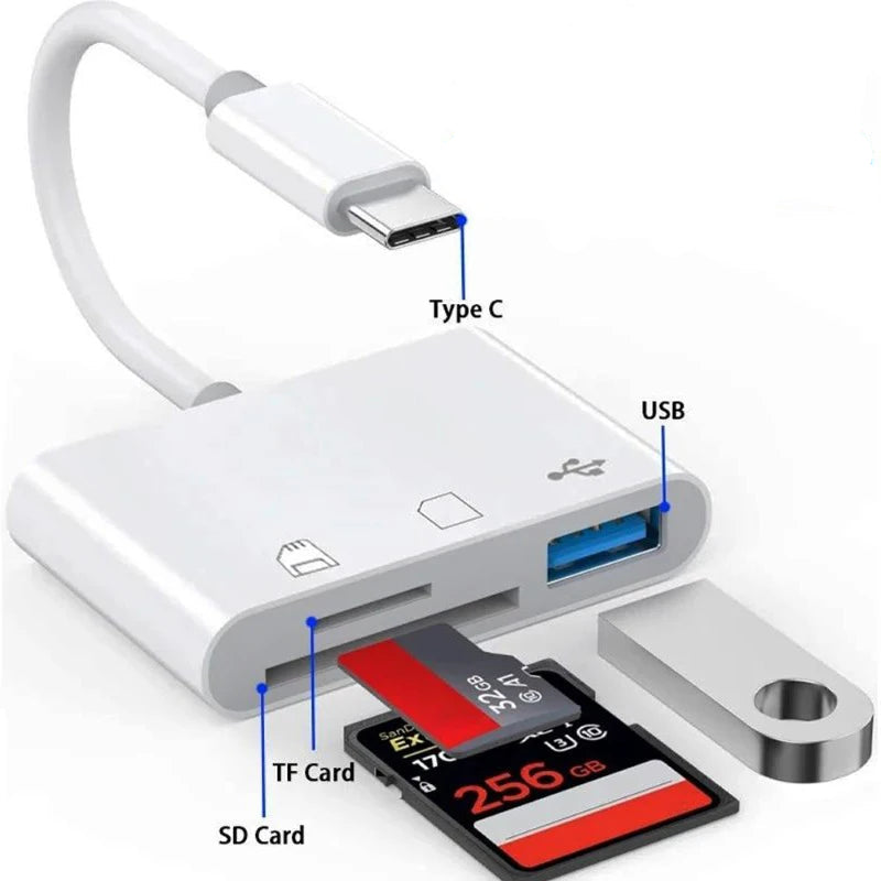 Upgrade your device connectivity with the 3-in-1 Type-C Card Reader & OTG Adapter, designed for fast data transfer and universal compatibility. This compact reader supports Micro SD, SD/TF cards, U Disk, and works seamlessly with iPhone 15 Series, Android phones, laptops, tablets, and other Type-C devices. Enjoy plug-and-play convenience with no additional drivers needed.